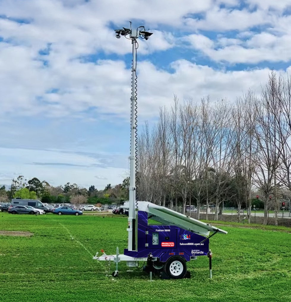 Australian Bollards’ Falcon 8800 Remote Surveillance Unit is a powerful, self-sufficient, and rapidly deployable security solution, ideal for safeguarding locations where fixed infrastructure, reliable power, and network connectivity are unavailable. Designed specifically for Australia's harsh conditions, the Falcon 8800 ensures continuous 24/7 site monitoring and intelligent threat detection wherever it's needed.