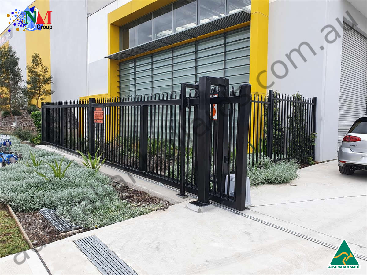 The gate is mounted on a track-based system, which allows it to slide smoothly and quietly along the track. This ensures that the gate opens and closes with minimal noise, providing a discreet and seamless entry and exit point for your property.