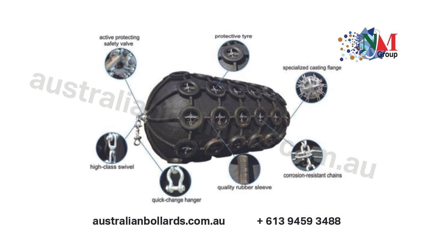 Marine fenders come in a range of different shapes, sizes and materials to suit each individual application. The suitability of each fender is dependent on three different factors: vessel size, weather condition and port structures. Larger marine vessels require larger fenders to withstand the impact, additionally high tides, low tides and wind power can affect the effectiveness of the fender. Australian Bollards can assist you in selecting the right fender to suit your specific requirements.